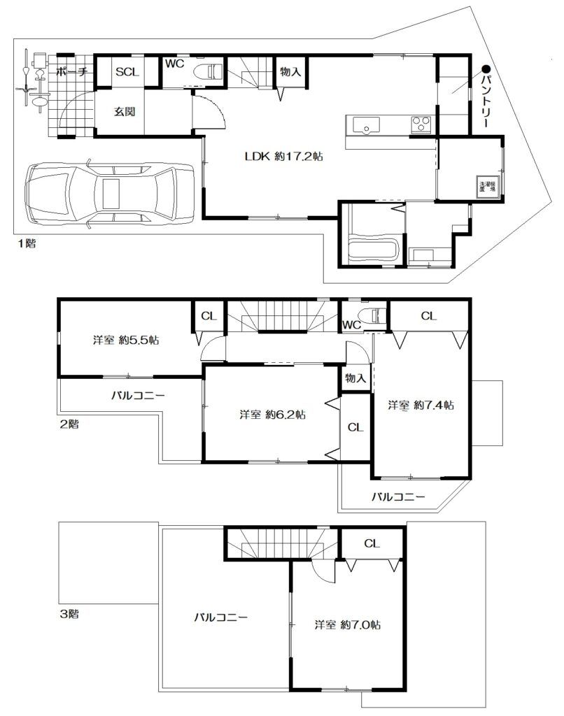 ■間取り:2階建+1S仕様 トップバルコニー標準仕様